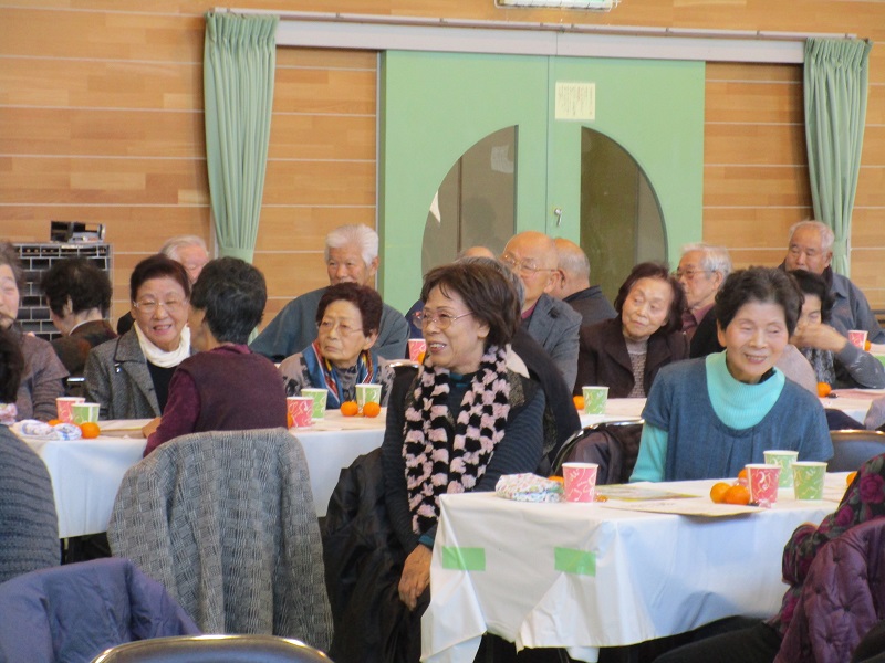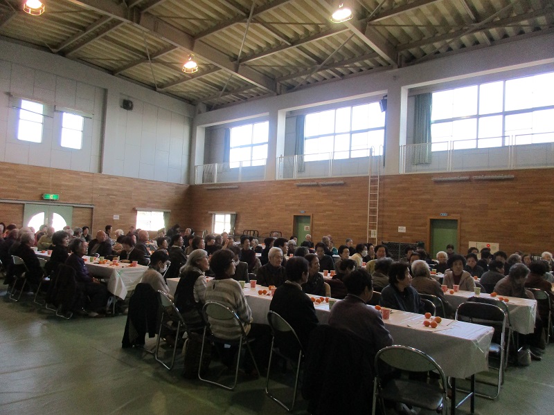 松岩公民館の体育館にて松岩地区のかぼちゃ粥会が行なわれました。※気仙沼では冬至にかぼちゃ粥を頂く習慣があります。