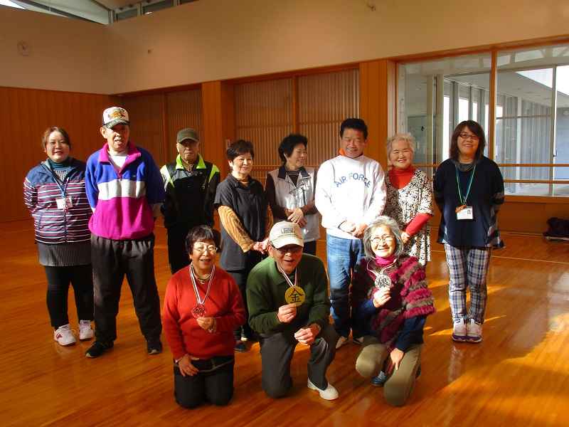 気仙沼市総合体育館第2武道場にて「ニュースポーツを楽しもう!」を牧沢自治会との共催にて開催いたしました。今回は、牧沢の地域、仮設住宅住民のほか、牧沢公営住宅に入居予定の方々も加わり、お茶っこ体操・海潮音体操(介護予防体操)の他、新聞紙を使ったニュースポーツゲームをしました。(※協力:介護予防普及サポーター、健康クリエイター)身近にある新聞紙を使ったゲーム(チーム戦)で盛り上がりました。今後、自治会婦人部活動でのレクリエーションに取り入れるとのことでした。ミニデイサービスでもよりたくさんの笑顔の花が咲きます。つながりから、どんどん咲きます笑顔の花!!