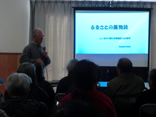 写真家の佐々木徳朗さん水梨地区住民)によるスライドショーでは昭和の羽田地区の様子をみて昔を懐かしみました。