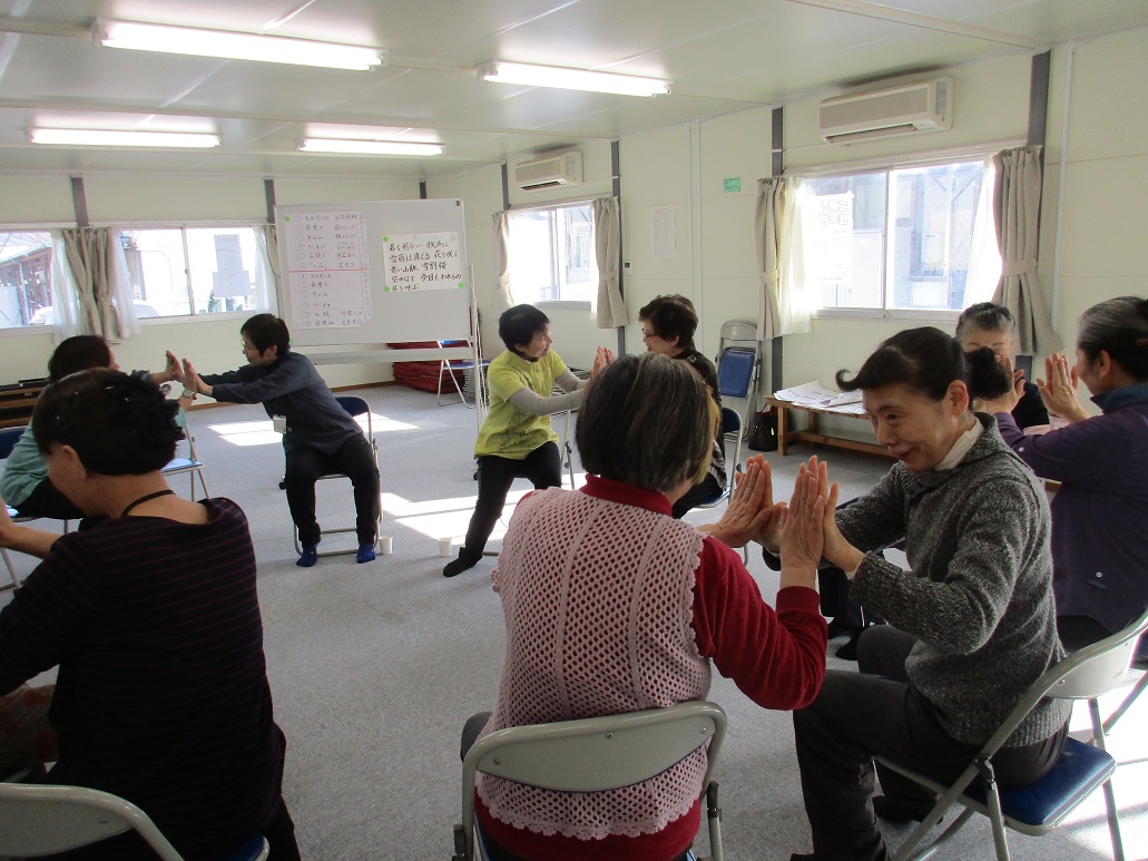 休憩時には会話が弾み、その後の手遊びには参加者から動きのアイディアが出るなど、笑いあり楽しみながら体を動かしました。