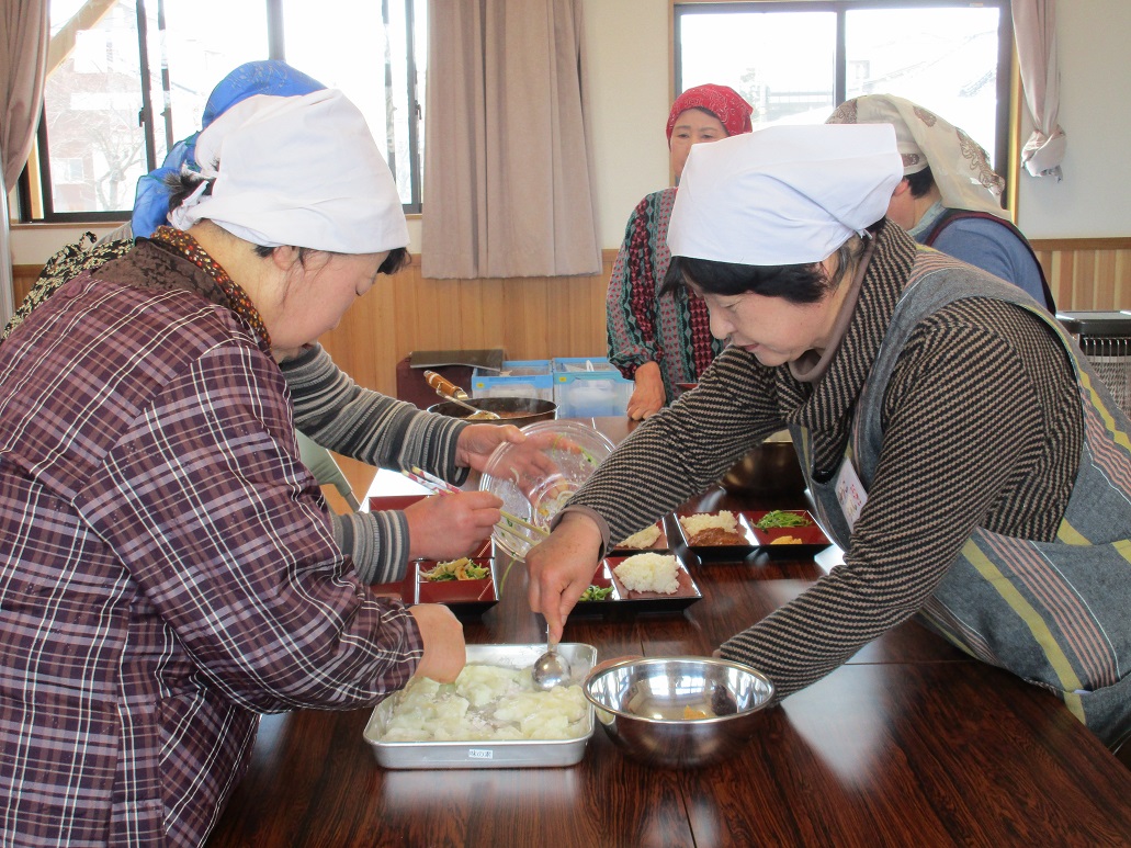 会話を楽しみながら美味しい料理を頂き、その後のお茶っこタイムでは自治会長さんを交えて今後の自治会の集う場や参加してみたい行事について皆で話されていました。