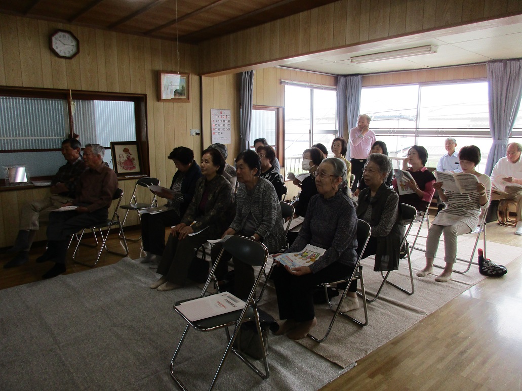 広域介護サービス気仙沼の次長兼所長様の「お家での介護とケアマネジャーについて」と、㈱クリニコ管理栄養士様による「運動後の水分補給について」の講話がありました。自治会の方々より「身近で耳にしたことがあるものの人には聞きづらい、知っているつもりでも詳しい事は分からない」というというお声が多く、参加した皆さんはとても熱心に聴講し、活発に質問していました。