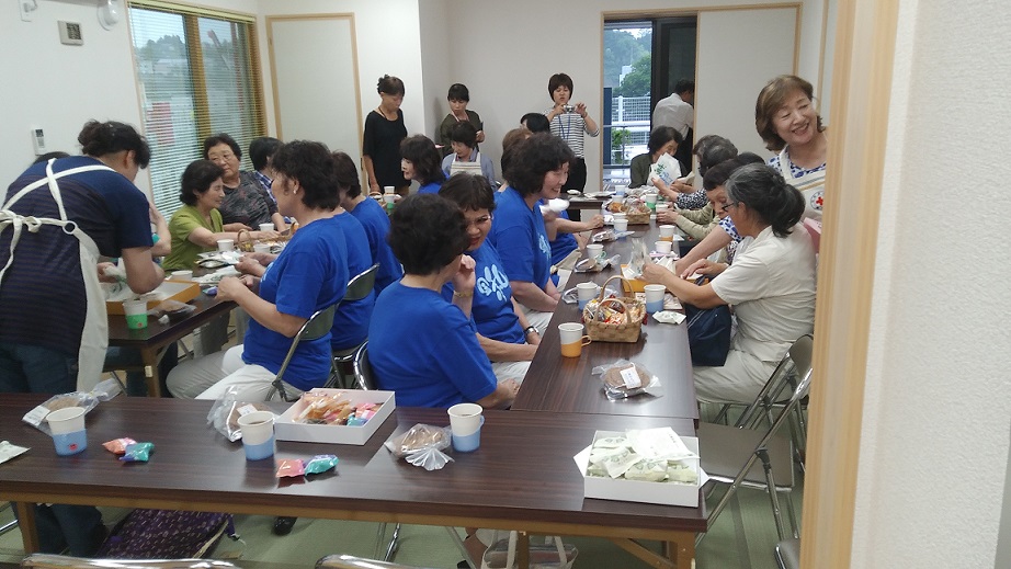 演奏会終了後のお茶会では、金和会の皆さんを交え和やかな雰囲気の中会話を楽しんでいました。公営住宅のみなさんと既存住民の方々との交流が広がっています。