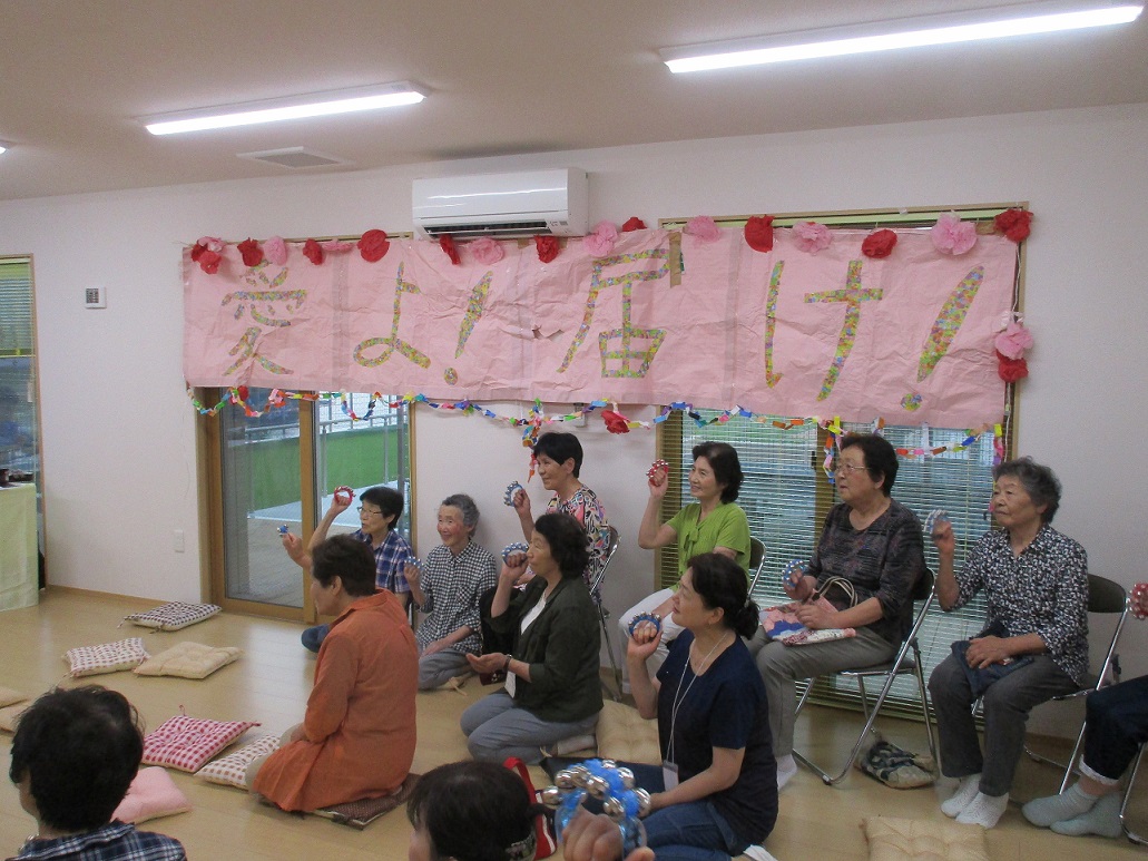 | 住民さんも鈴をもって演奏に参加☆. | **お茶会の様子** |