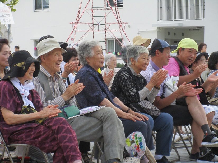 久しぶりの晴天に恵まれ昨年に続き第2回鹿折地区復興盆踊り大会が開催されました。鹿折地区の自治連、まちづくり協議会、PTAなど地域の方々が一丸となって準備を重ねてきました。ポスターは地区の小学生が担当しました。今年の会場は鹿折南住宅前広場とあって広く大勢の人々で賑わいました。舞踊、歌、太鼓、バザー等いろんなプログラムが組まれ、どの会場も子供から大人まで笑顔でいっぱいでした。「早く踊りたい~」とゆかた姿ではしゃぐ子供達、最後は輪踊りで締めくくりました。